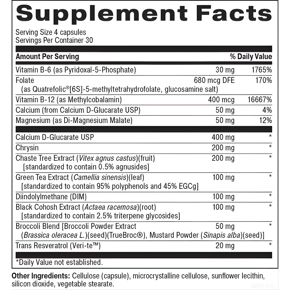 Balance Her Out™ is a unique formula that contains extensively studied nutrients and herbs that have been shown to support female hormonal balance and healthy estrogen metabolism.* Hormonal balance can play an important role in hair and skin vitality, elasticity, hydration, and radiance.* It can influence hair follicle health and function and skin oil production, cellular health, and inflammatory responses.* This formula harnesses the power of diindolylmethane (DIM), black cohosh, chaste tree extract, chrysin, and calcium D‐glucarate to promote healthy sex hormone balance and detoxification and antioxidant status, which are key factors in promoting luxurious hair and radiant skin.*