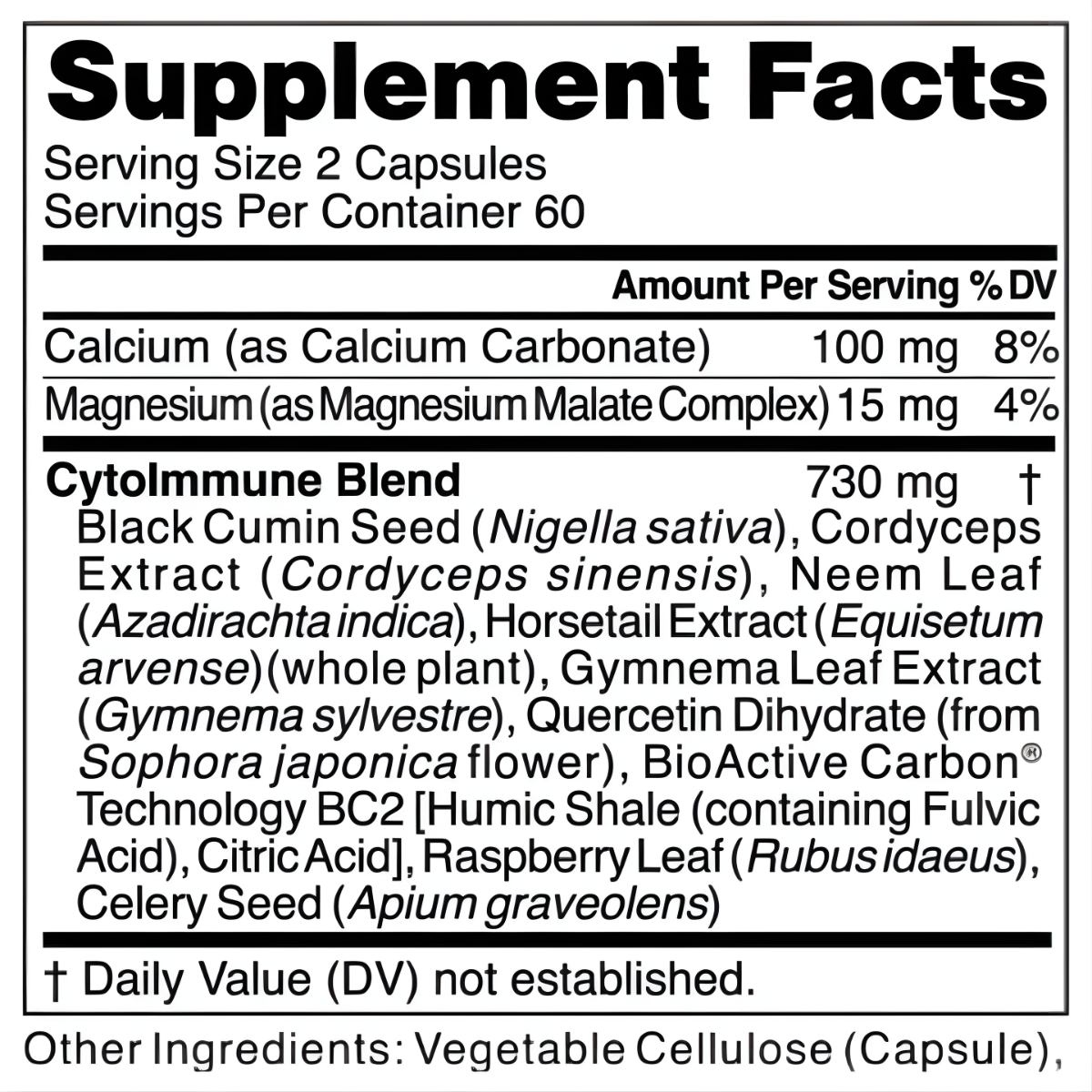A well-rounded, ideal solution for a healthy immune and inflammatory response year-round, CytoImmune can be taken at the early onset of symptoms, for seasonal immune support, and during periods where immunity may be weakened  such as when traveling or experiencing stress.*