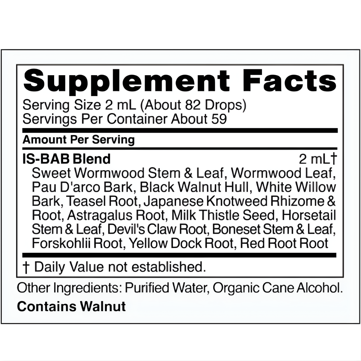 The liquid tincture format promotes faster absorption and maximum potency, as well as allows for customized dosing. As a concentrated tincture, IS-BAB has higher potency than capsules.