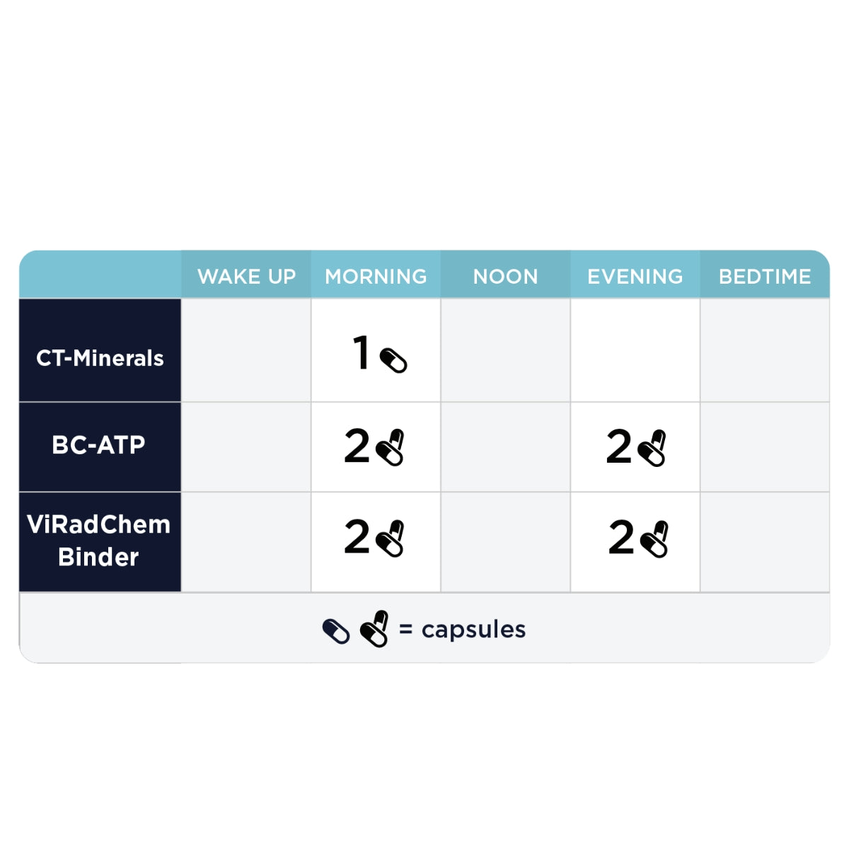 The Maintenance Kit includes BC-ATP, CT-Minerals, and ViRadChem Binder. This kit is an ideal solution for patients who wish to scale down on the number of supplements they are taking while receiving adequate nutrients to support the body and all of its processes.*